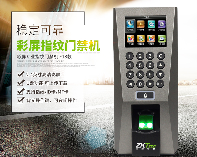 • ZKTeco/熵基F18指紋門禁考勤一體機